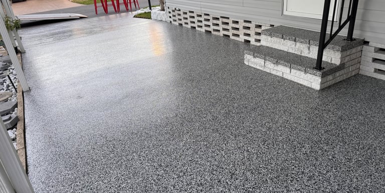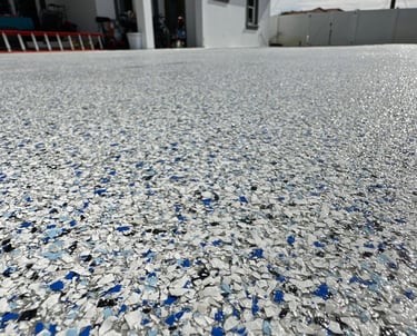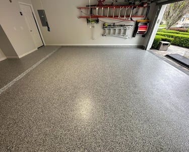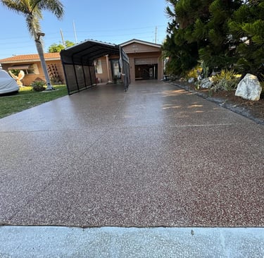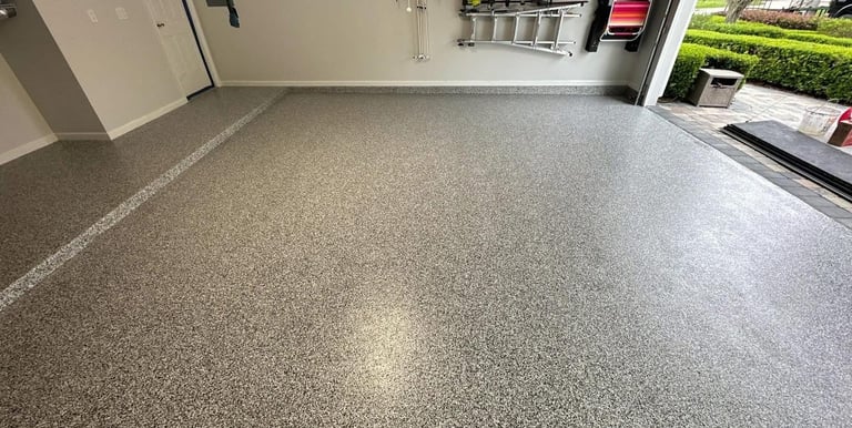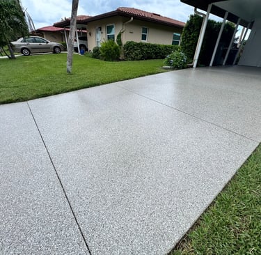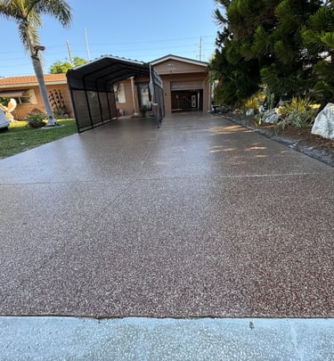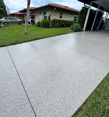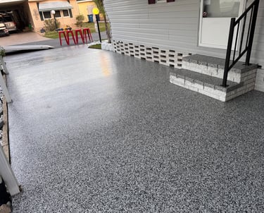 A selection of decorative flake finishes installed in Florida homes and professional spaces.