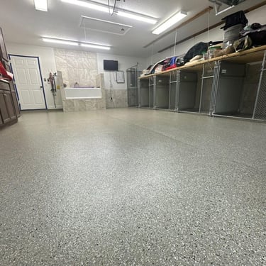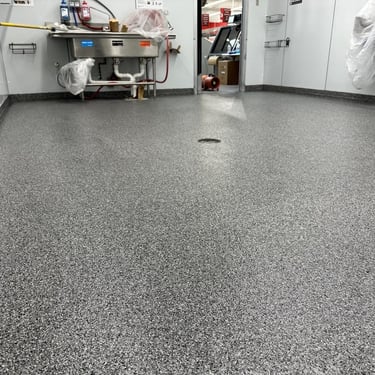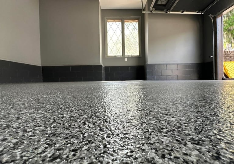 By focusing on a single decorative flake system, we’re able to refine the details like color balance, texture, and finish so that each space feels deliberate and complete.