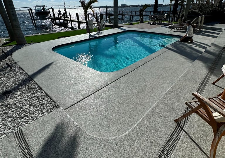 Florida living happens outdoors. Our decorative coatings are designed to complement natural light, landscaping, and water creating surfaces that feel cool, cohesive, and comfortable underfoot.